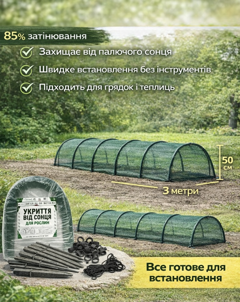 - Сонцезахисне аркове укриття для рослин (3 м)